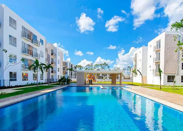 Die 83 m² große Ferienwohnung Perla Turquesa Playa del Carmen in Playa del Carmen befindet sich ungefähr 15 Fahrminuten von der La Galería de Playa und ca. 4 km vom Plaza Las Americas entfernt. Vor einem erfrischenden Bad können sich die Gäste an einem Swimmingpool entspannen.